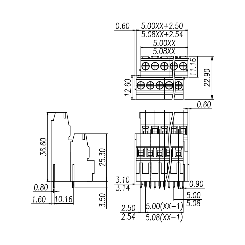 | Pitch / Poles | 5.08 mm / 2 ~ 24 poles | ||