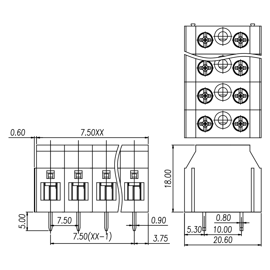 | Pitch / Poles | 7.50 mm / 1 ~ 30 poles | ||