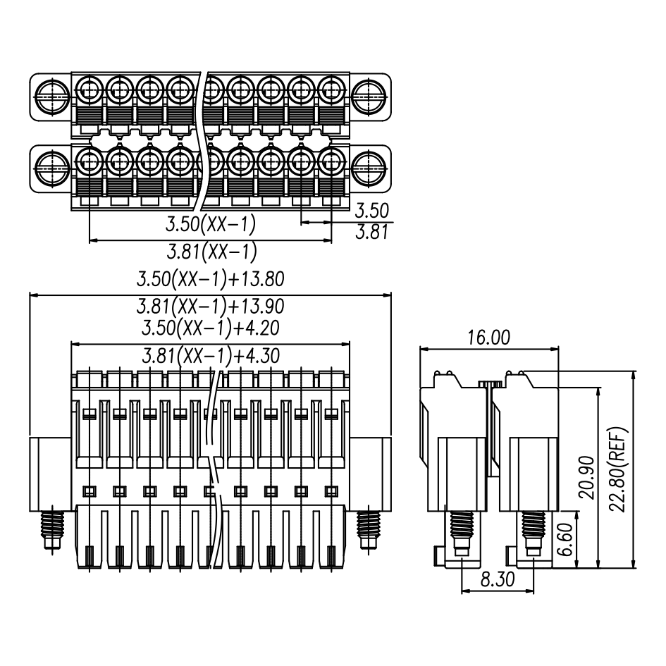 | Pitch / Poles | 3.81 mm / 2 ~ 24 poles | ||