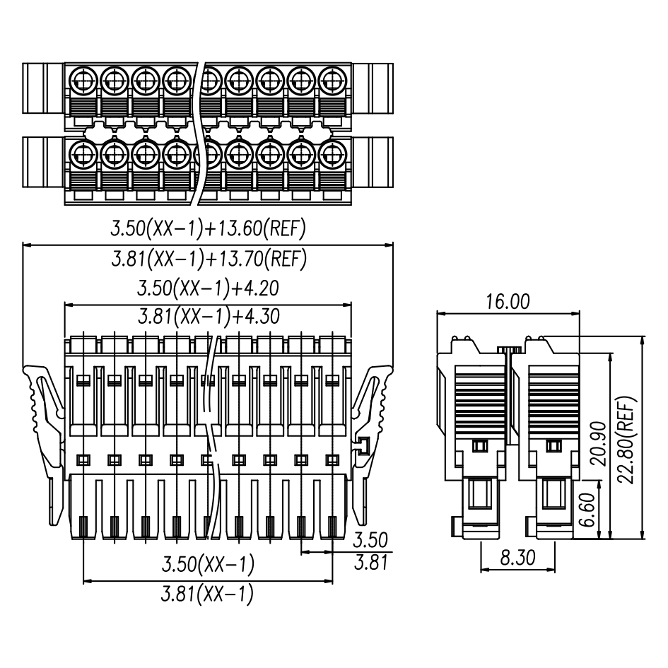 | Pitch / Poles | 3.81 mm / 2 ~ 24 poles | ||