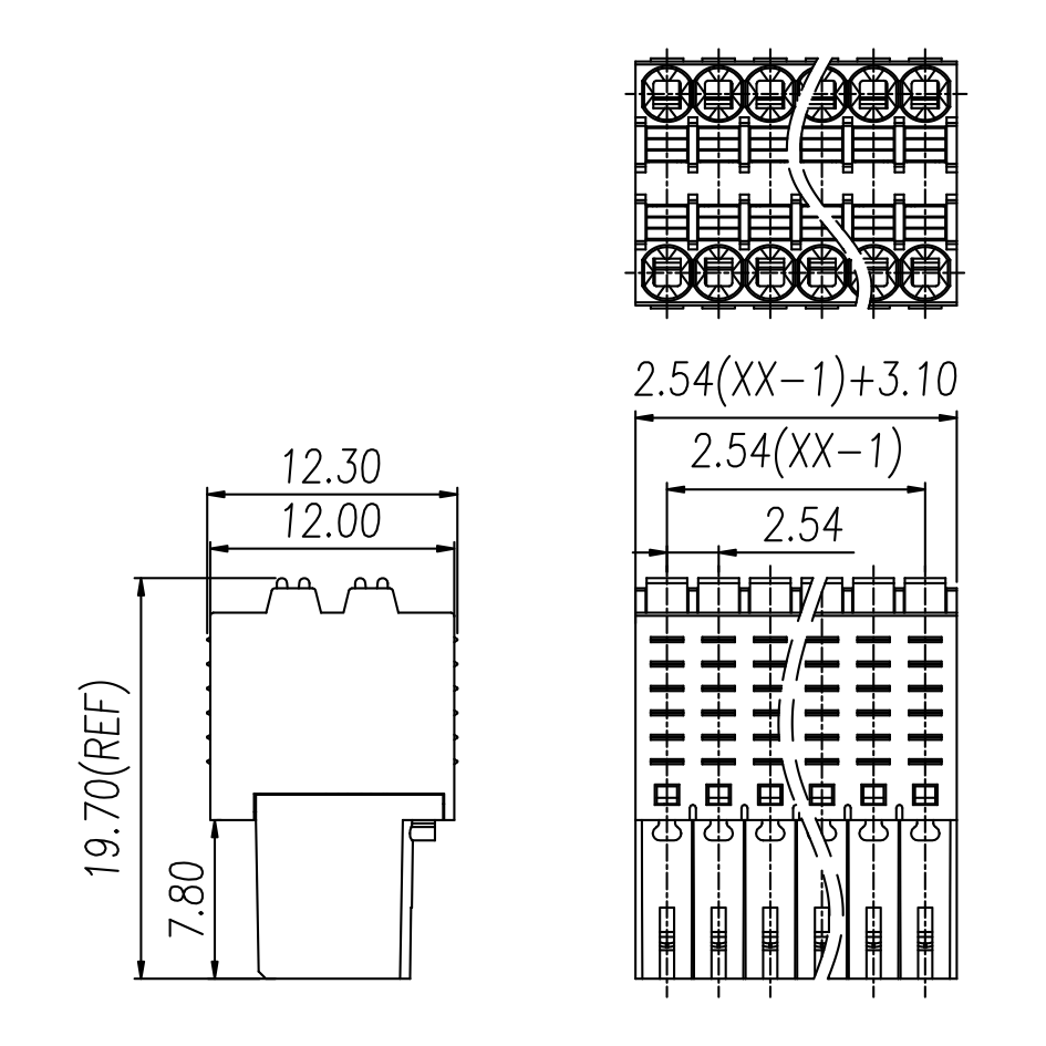 | Pitch / Poles | 2.54 mm / 2 ~ 24 poles | ||
