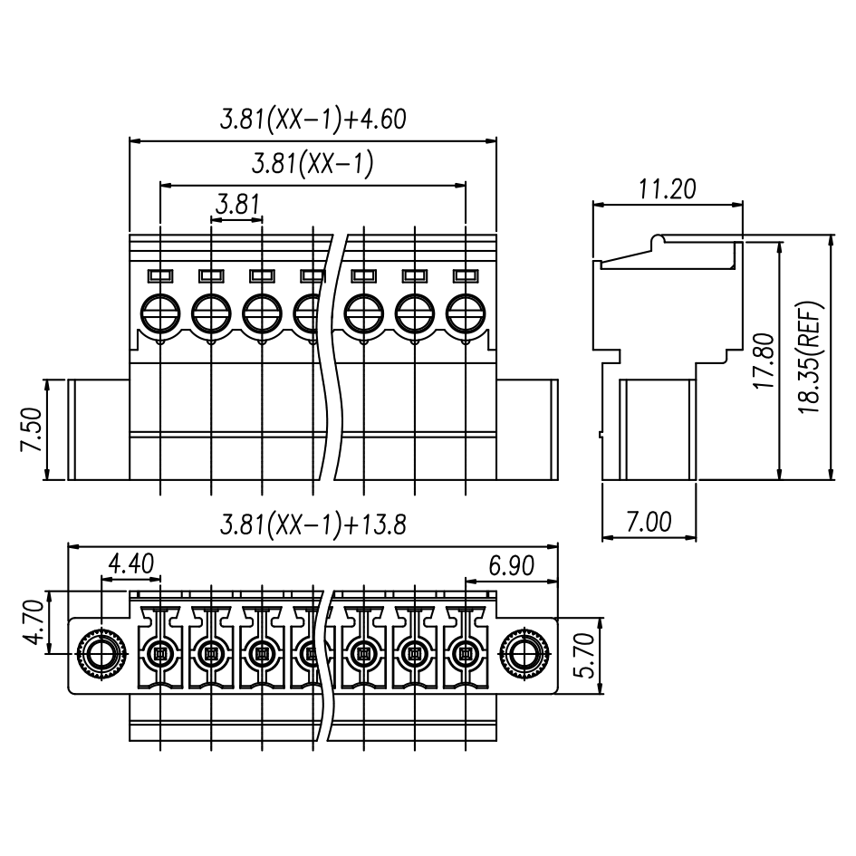 | Pitch / Poles | 3.81 mm / 2 ~ 24 poles | ||