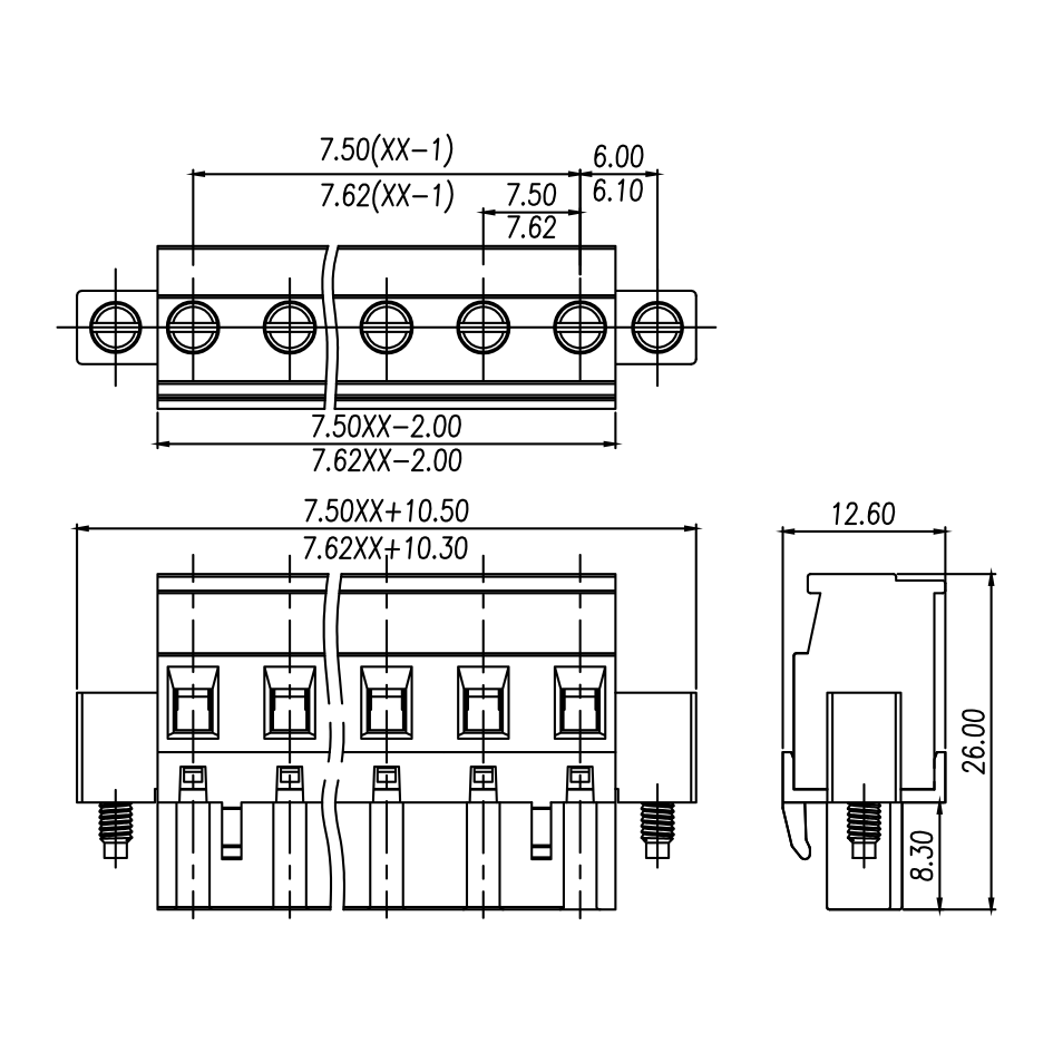 | Pitch / Poles | 7.50 mm / 2 ~ 24 poles | ||