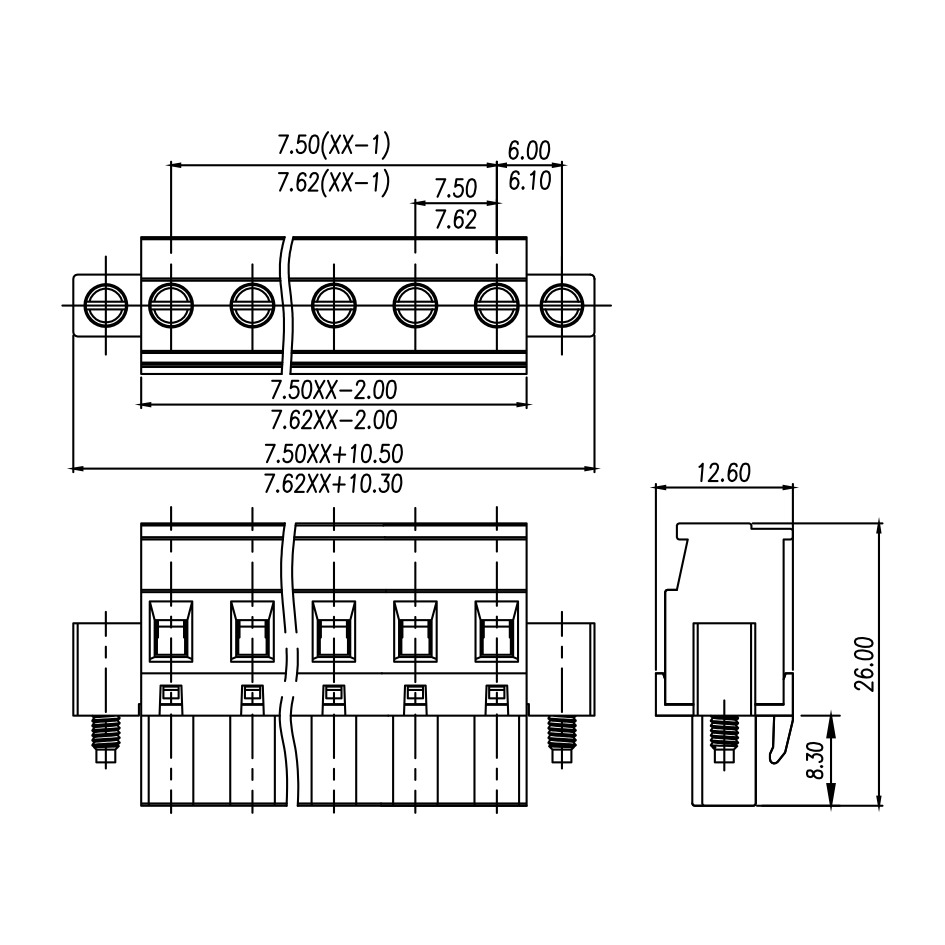 | Pitch / Poles | 7.62 mm / 2 ~ 24 poles | ||