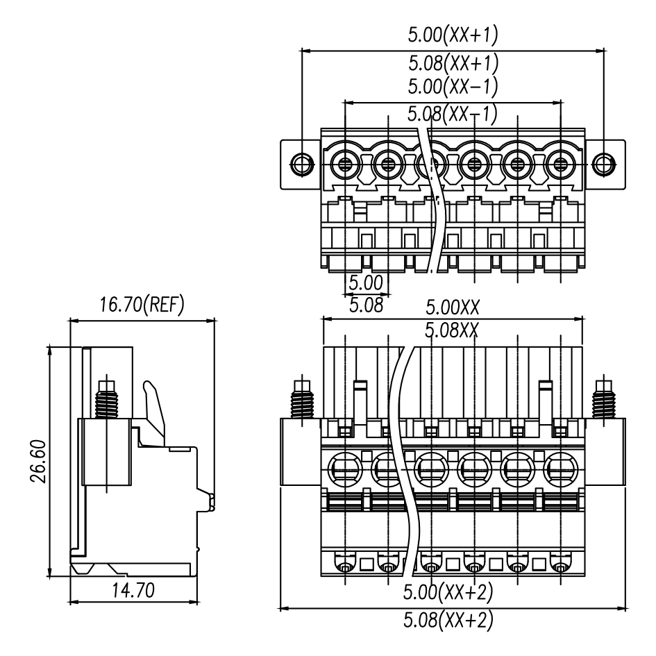 | Pitch / Poles | 5.08 mm / 2 ~ 24 poles | ||
