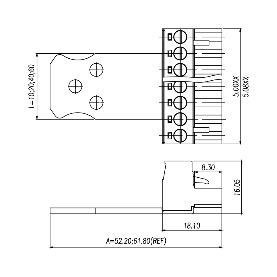 | Pitch / Poles | 5.08 mm / 2 ~ 24 poles | ||