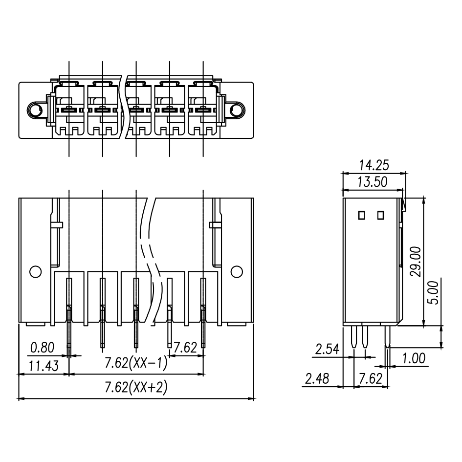 | Pitch / Poles | 7.62 mm / 2 ~ 12 poles | ||