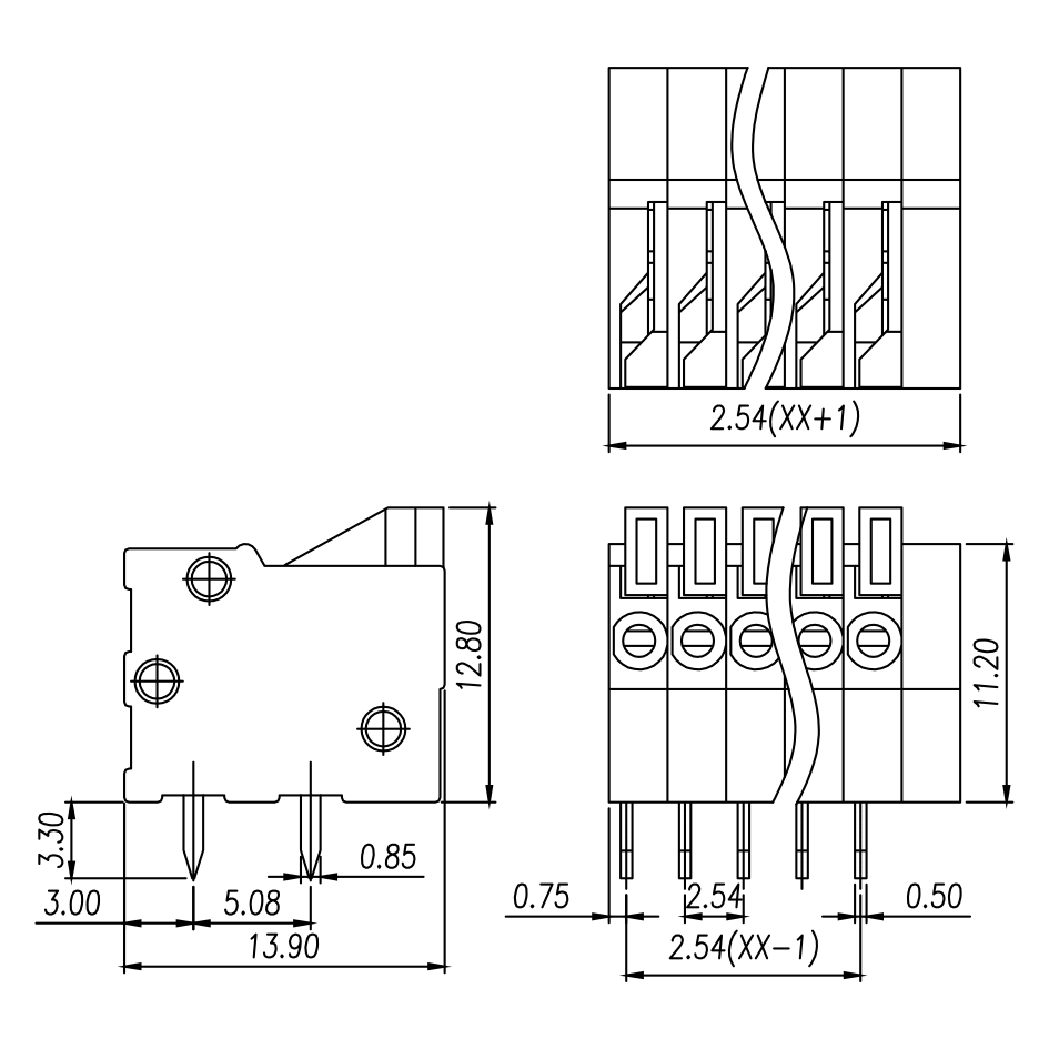 | Pitch / Poles | 2.54 mm / 1 ~ 30 poles | ||