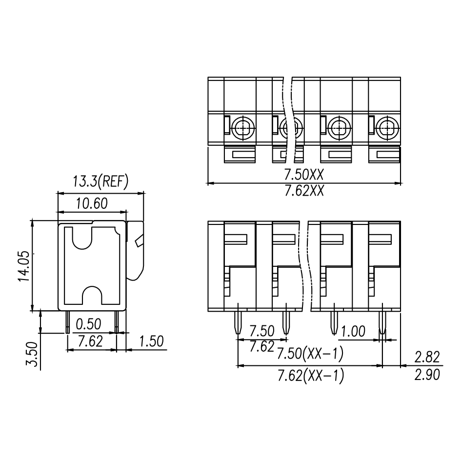 | Pitch / Poles | 7.50 mm / 2 ~ 24 poles | ||