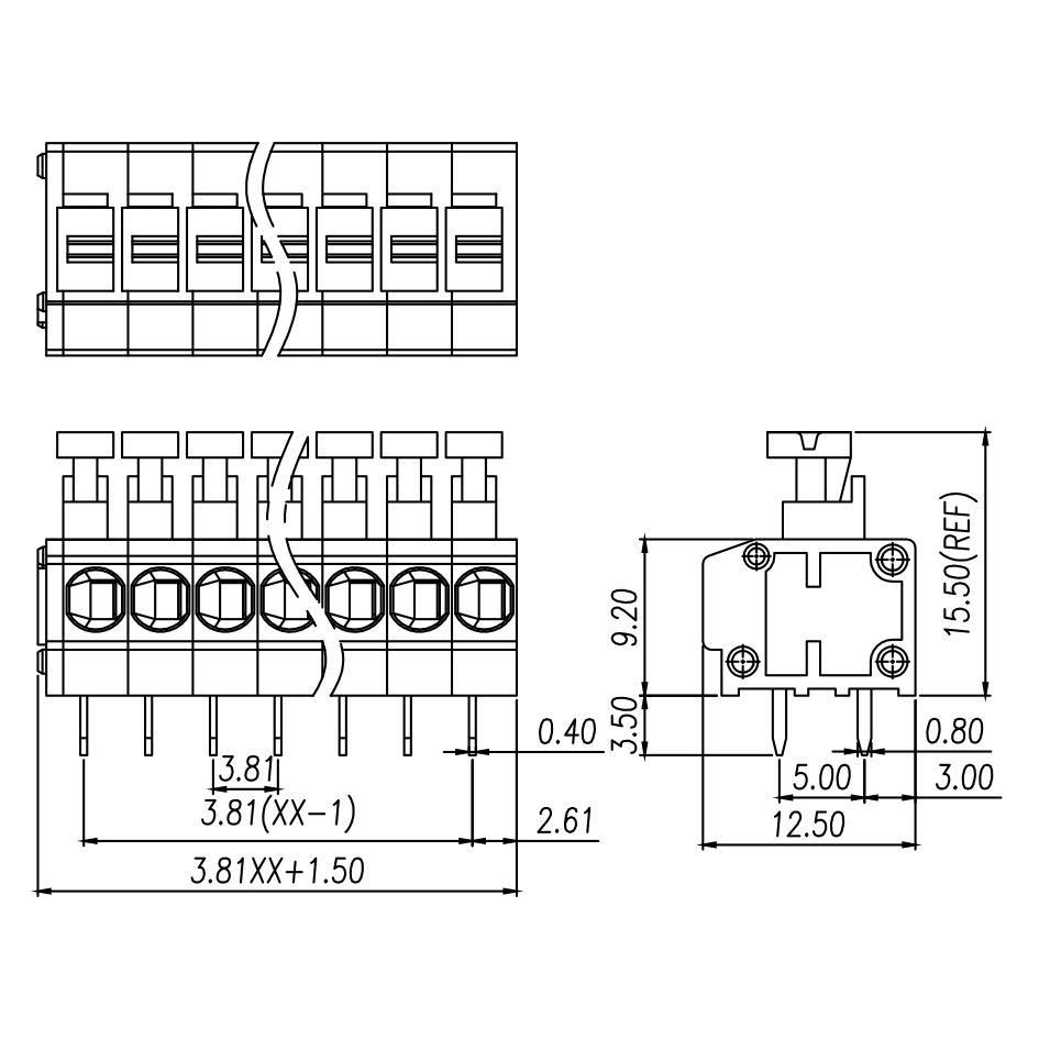 | Pitch / Poles | 3.81 mm / 1 ~ 30 poles | ||