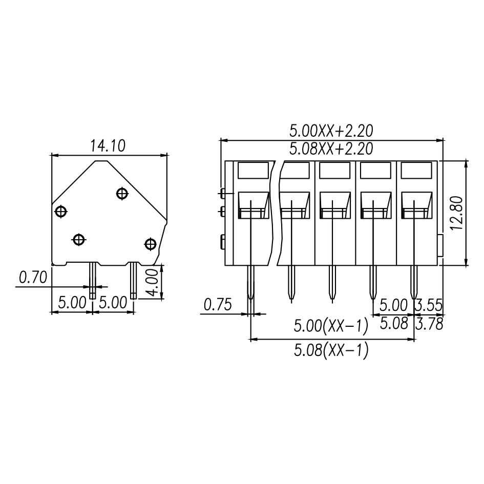 | Pitch / Poles | 5.00 mm / 1 ~ 30 poles | ||