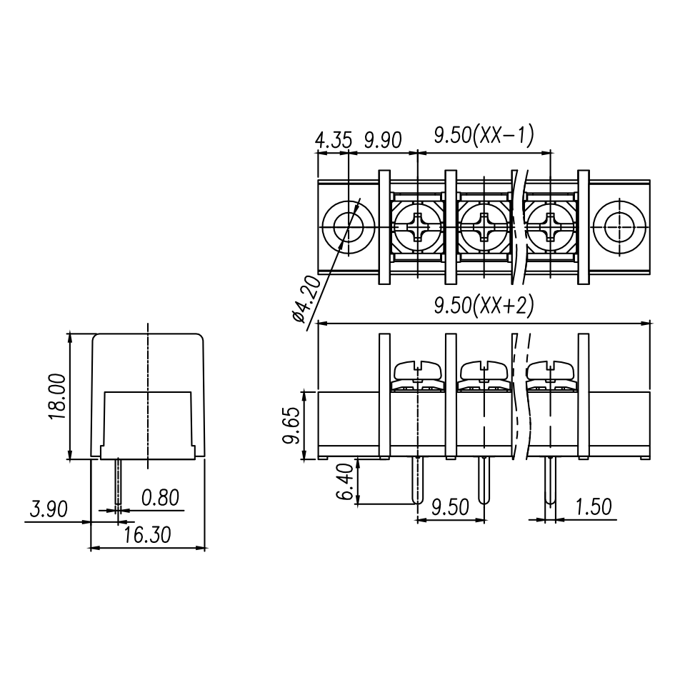 | Pitch / Poles | 9.50 mm / 2 ~ 22 poles | |