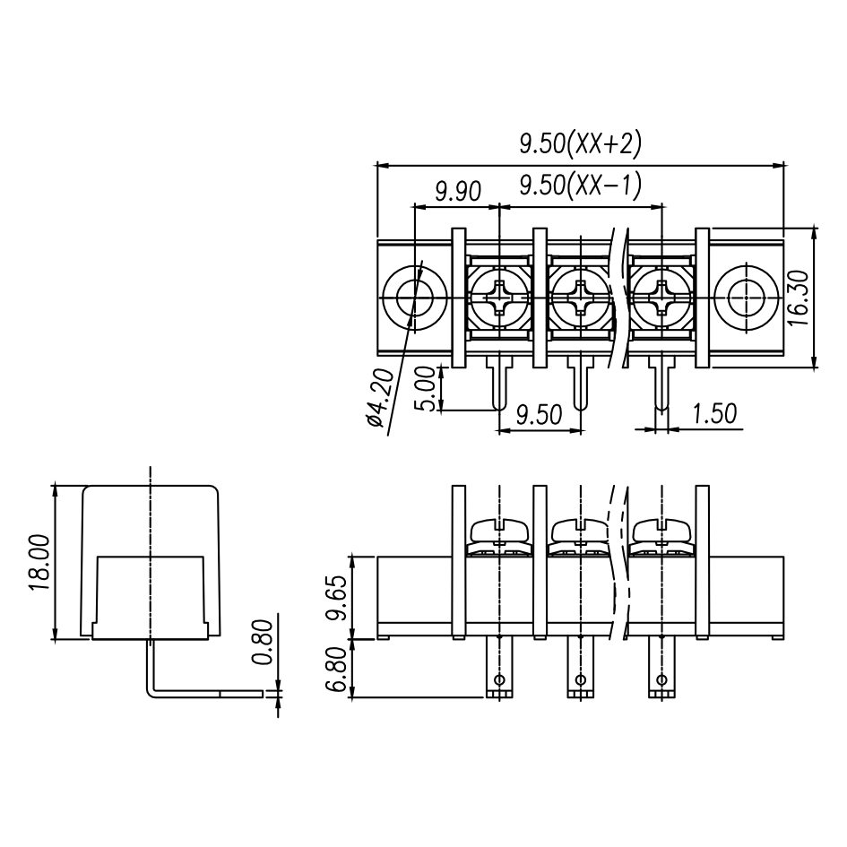 | Pitch / Poles | 9.50 mm / 2 ~ 22 poles | |