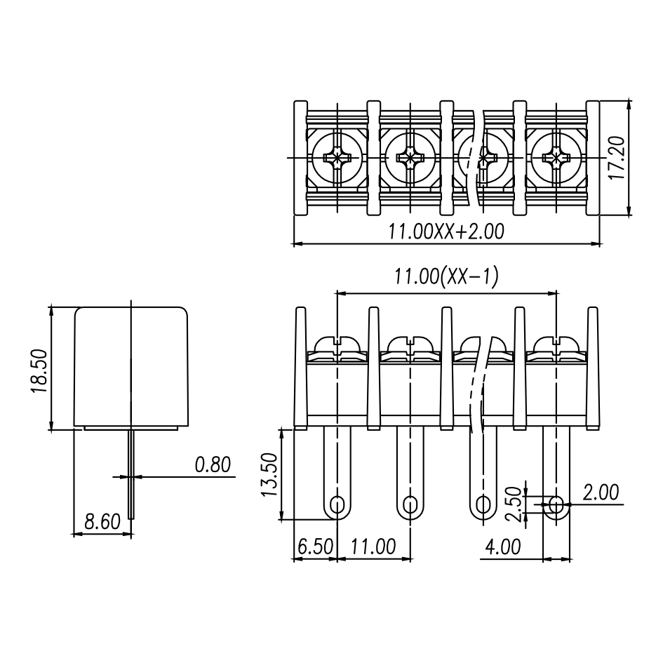 | Pitch / Poles | 11.00 mm / 2 ~ 24 poles | |