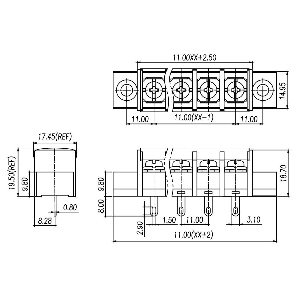 | Pitch / Poles | 11.00 mm / 2 ~ 20 poles | |