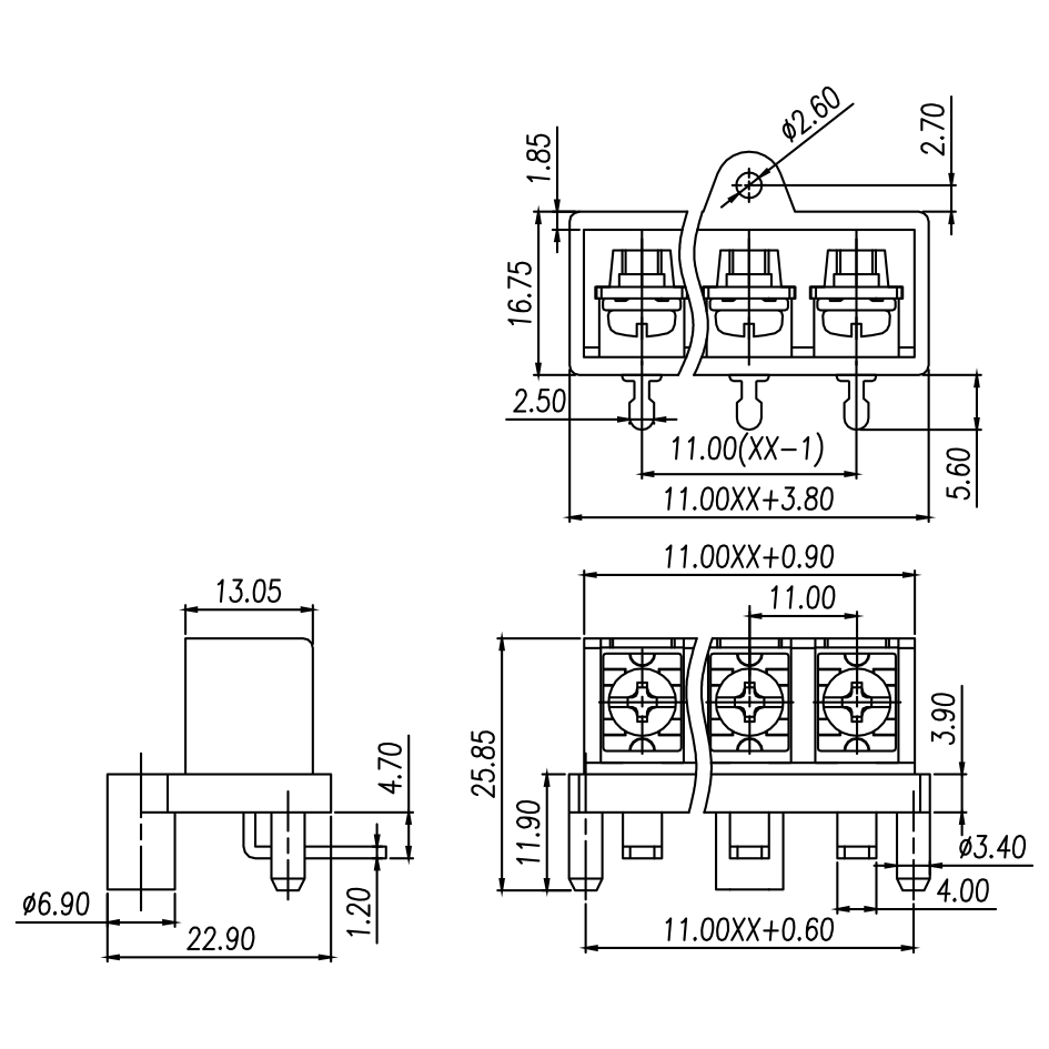 | Pitch / Poles | 11.00 mm / 3 poles | |