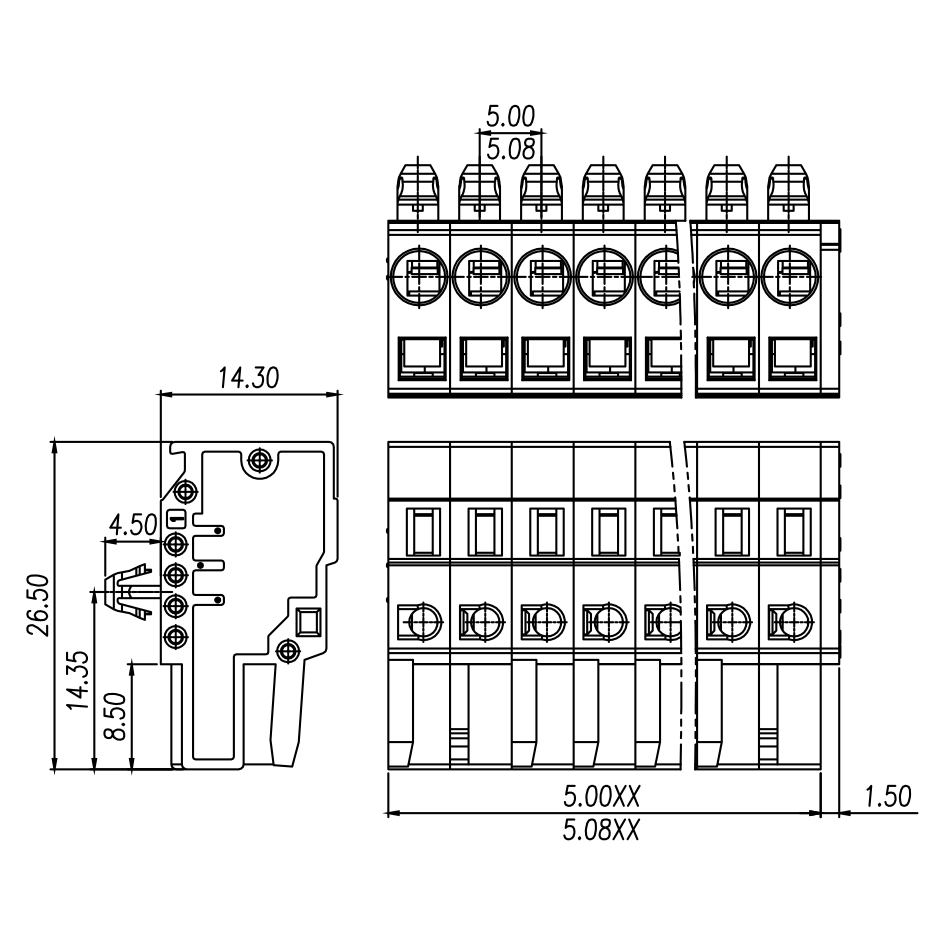 | Pitch / Poles | 5.00 mm / 2 ~ 24 poles | ||