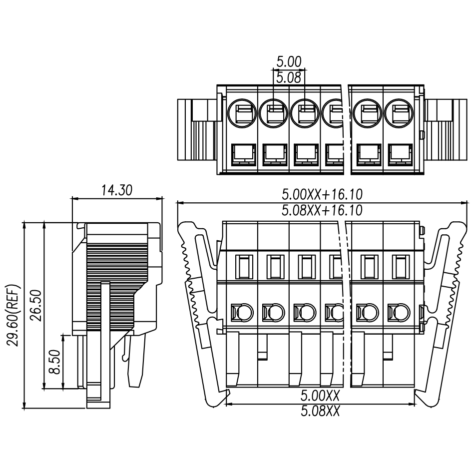 | Pitch / Poles | 5.00 mm / 2 ~ 24 poles | ||
