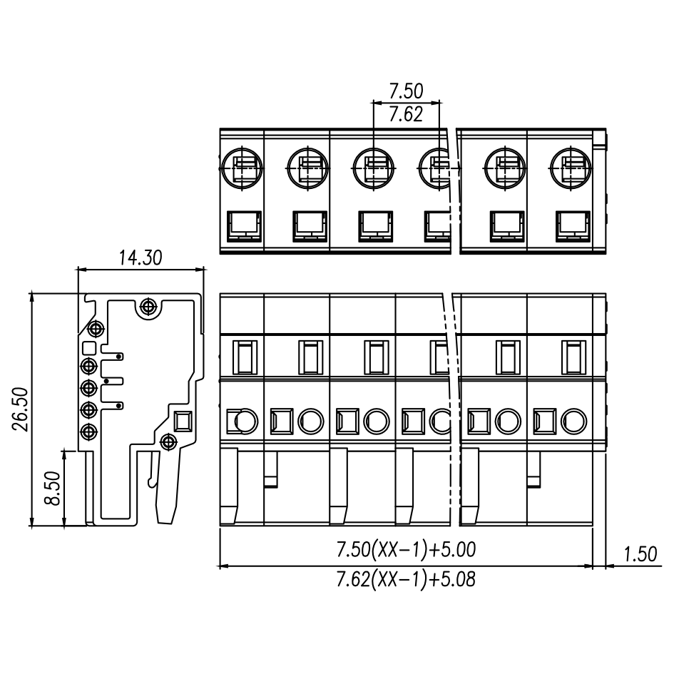 | Pitch / Poles | 7.62 mm / 2 ~ 24 poles | ||