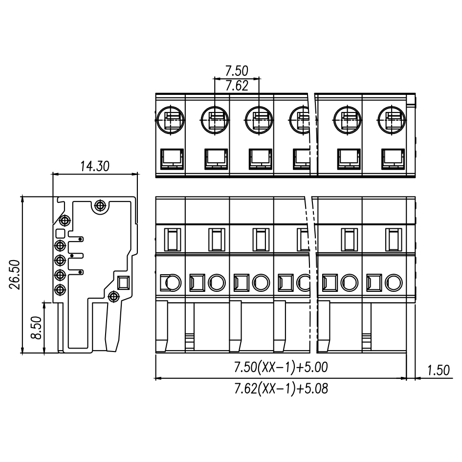 | Pitch / Poles | 7.50 mm / 2 ~ 24 poles | ||