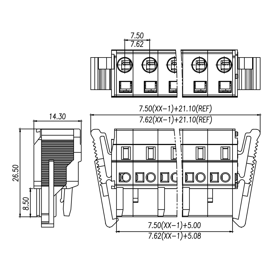 | Pitch / Poles | 7.62 mm / 2 ~ 24 poles | ||