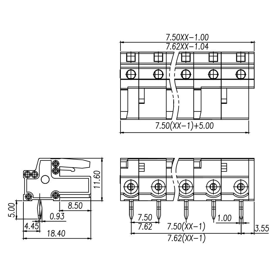 | Pitch / Poles | 7.50 mm / 2 ~ 24 poles | ||