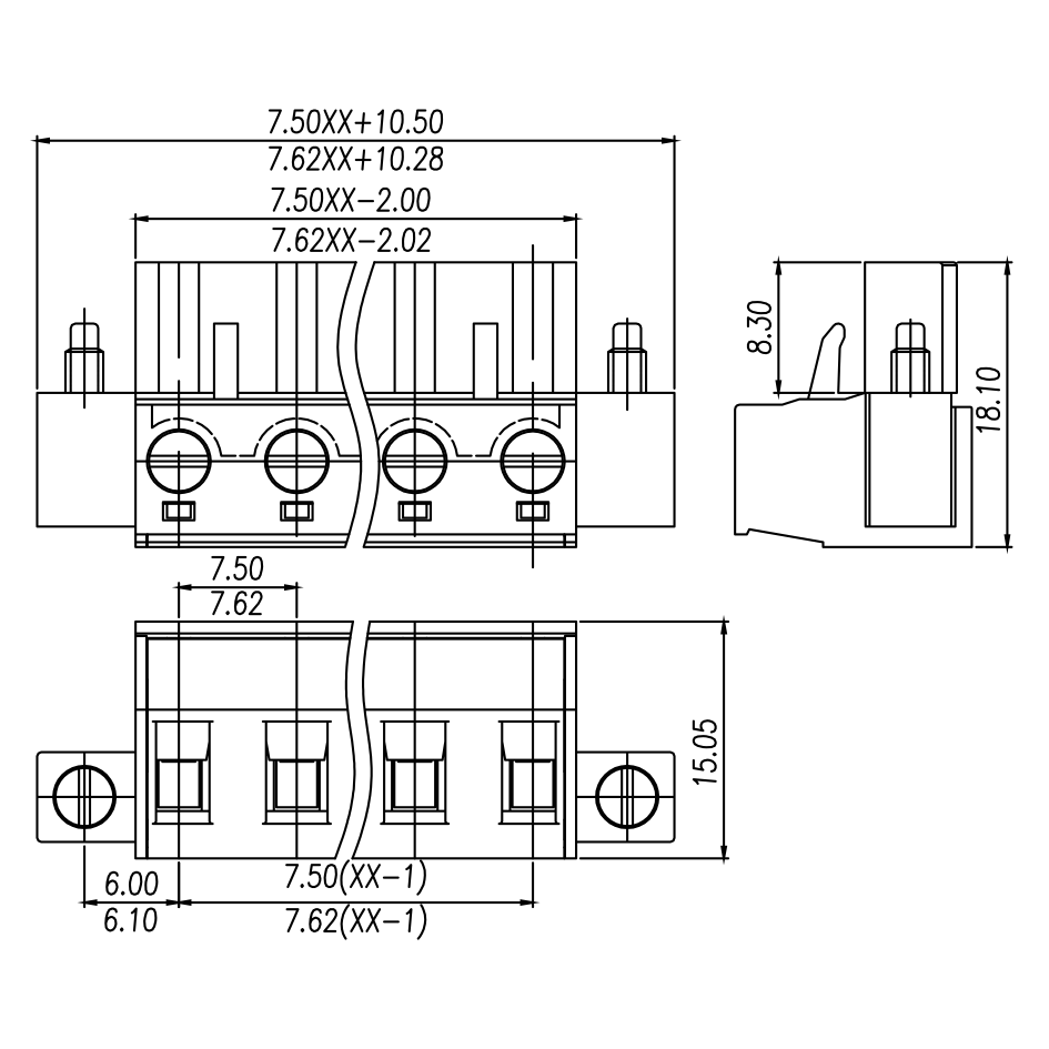 | Pitch / Poles | 7.62 mm / 2 ~ 24 poles | ||