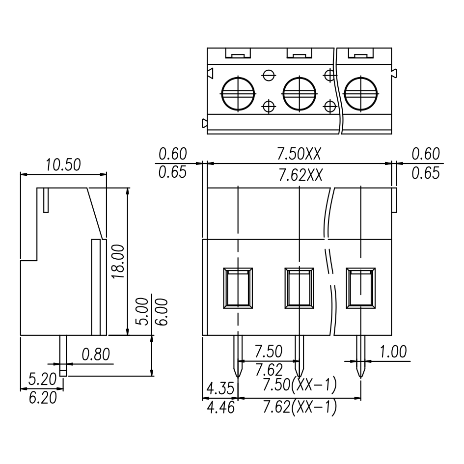 | Pitch / Poles | 7.50 mm / 2 ~ 24 poles | ||