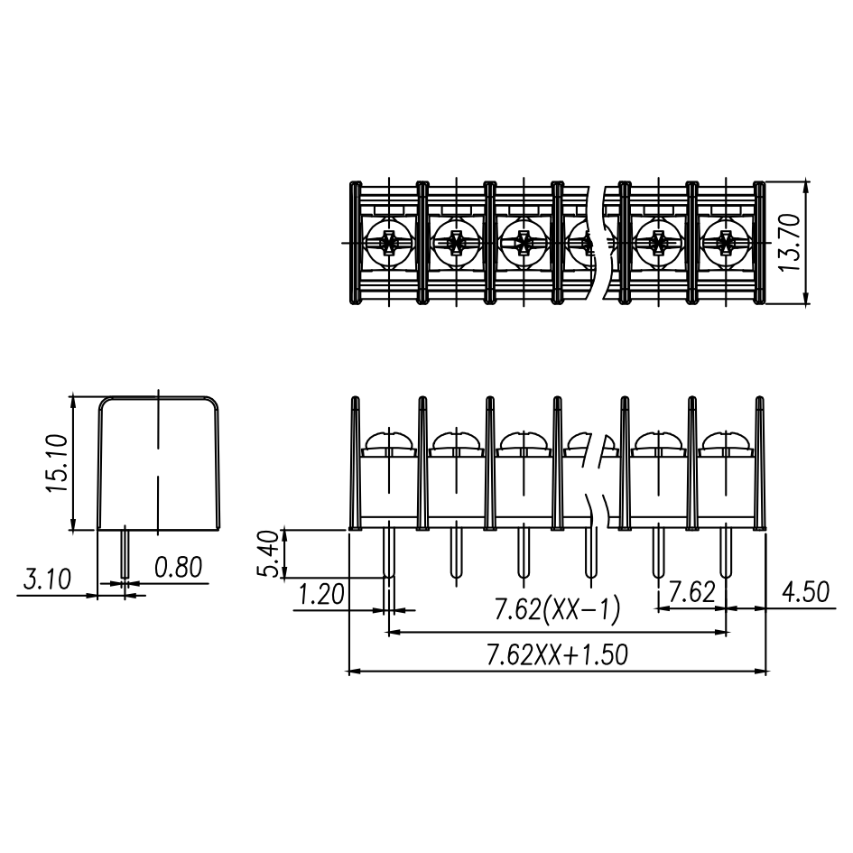 | Pitch / Poles | 7.62 mm / 2 ~ 26 poles | |