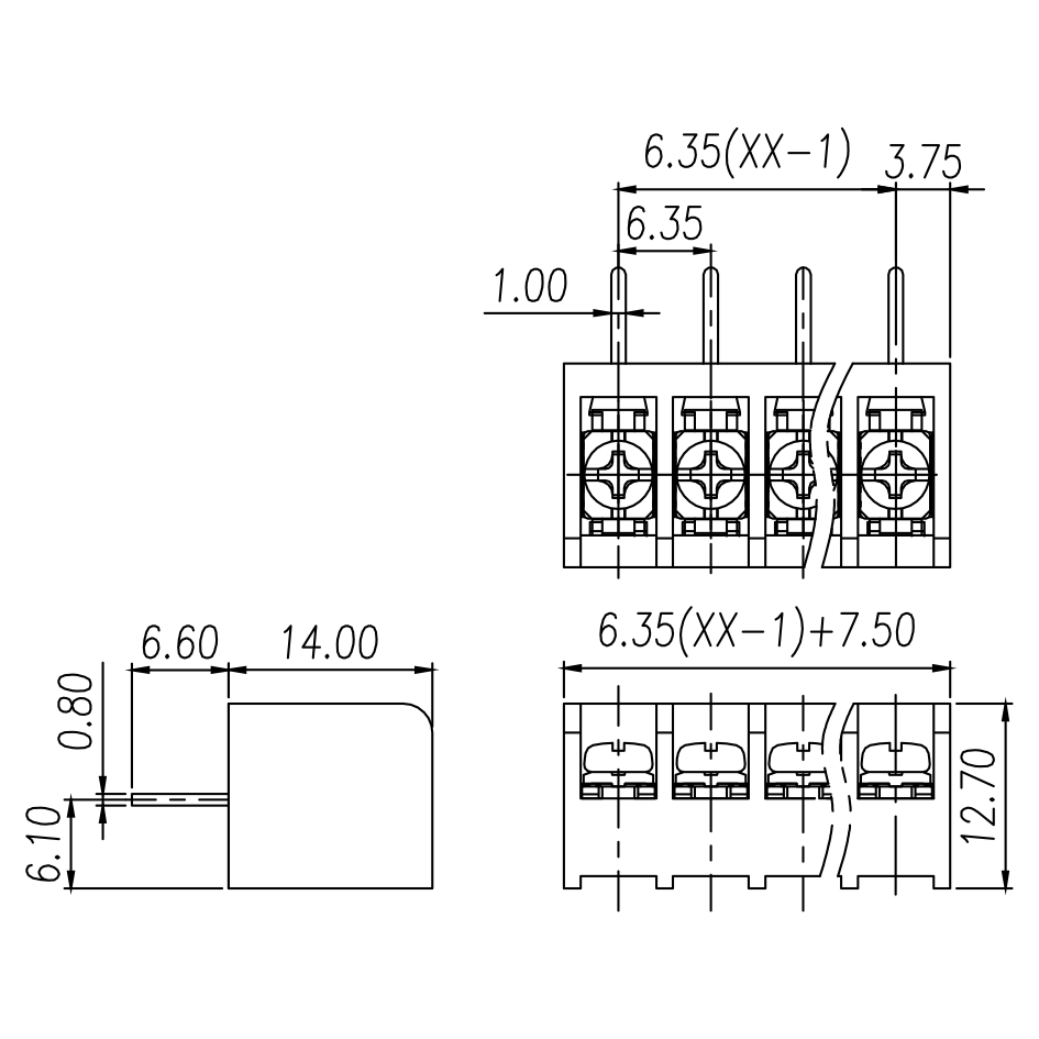 | Pitch / Poles | 6.35 mm / 2 ~ 30 poles | |