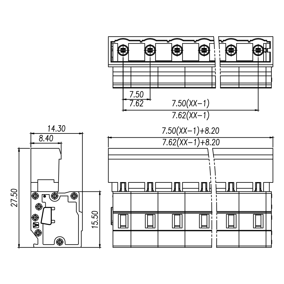 | Pitch / Poles | 7.62 mm / 2 ~ 24 poles | ||