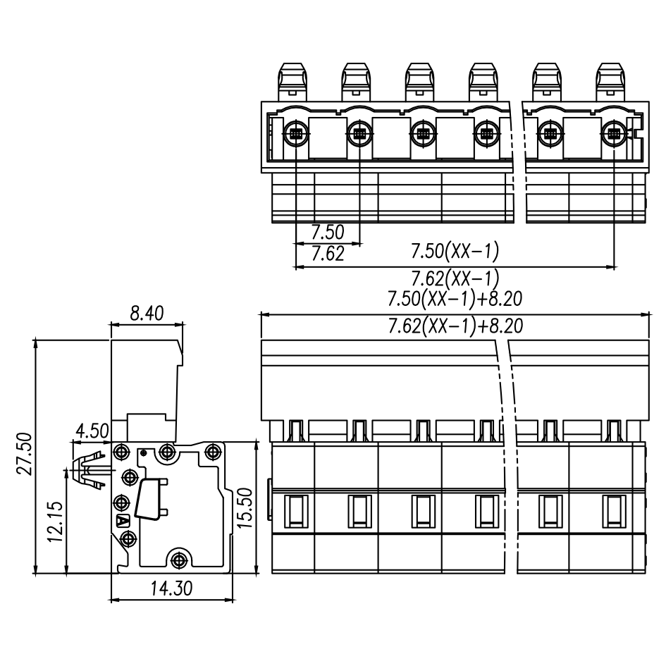 | Pitch / Poles | 7.62 mm / 2 ~ 24 poles | ||