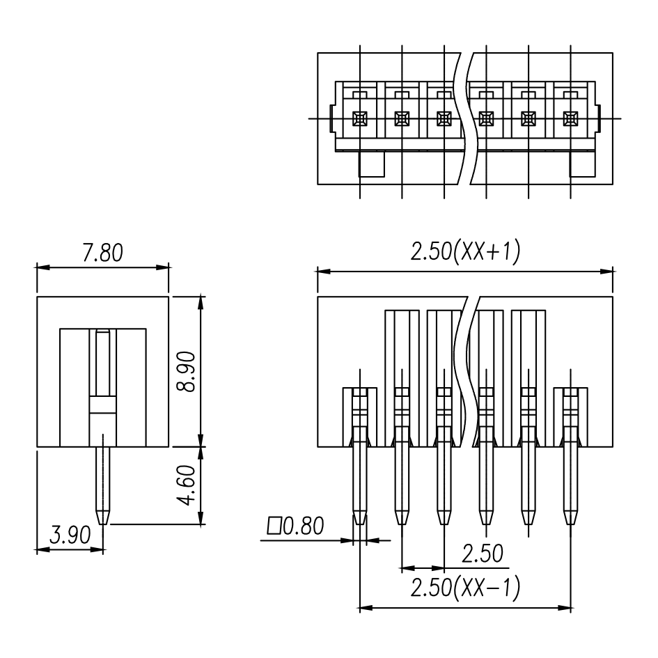| Pitch / Poles | 2.50 mm / 2 ~ 12 poles | ||