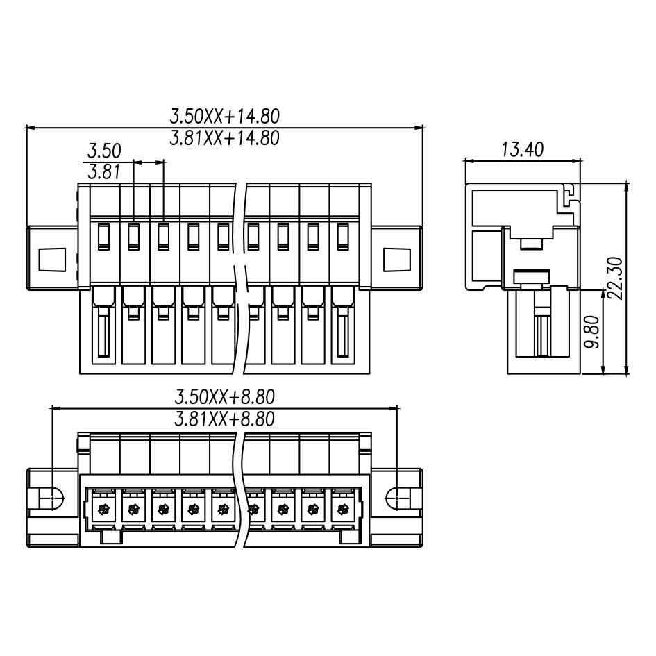 | Pitch / Poles | 3.81 mm / 2 ~ 24 poles | ||